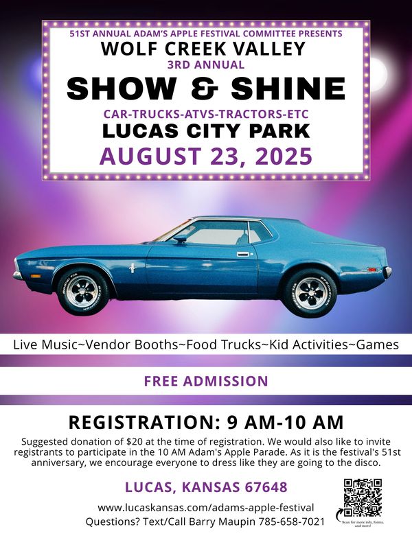The Adam’s Apple Festival Committee presents the 2nd Annual Wolf Creek Valley Show & Shine.